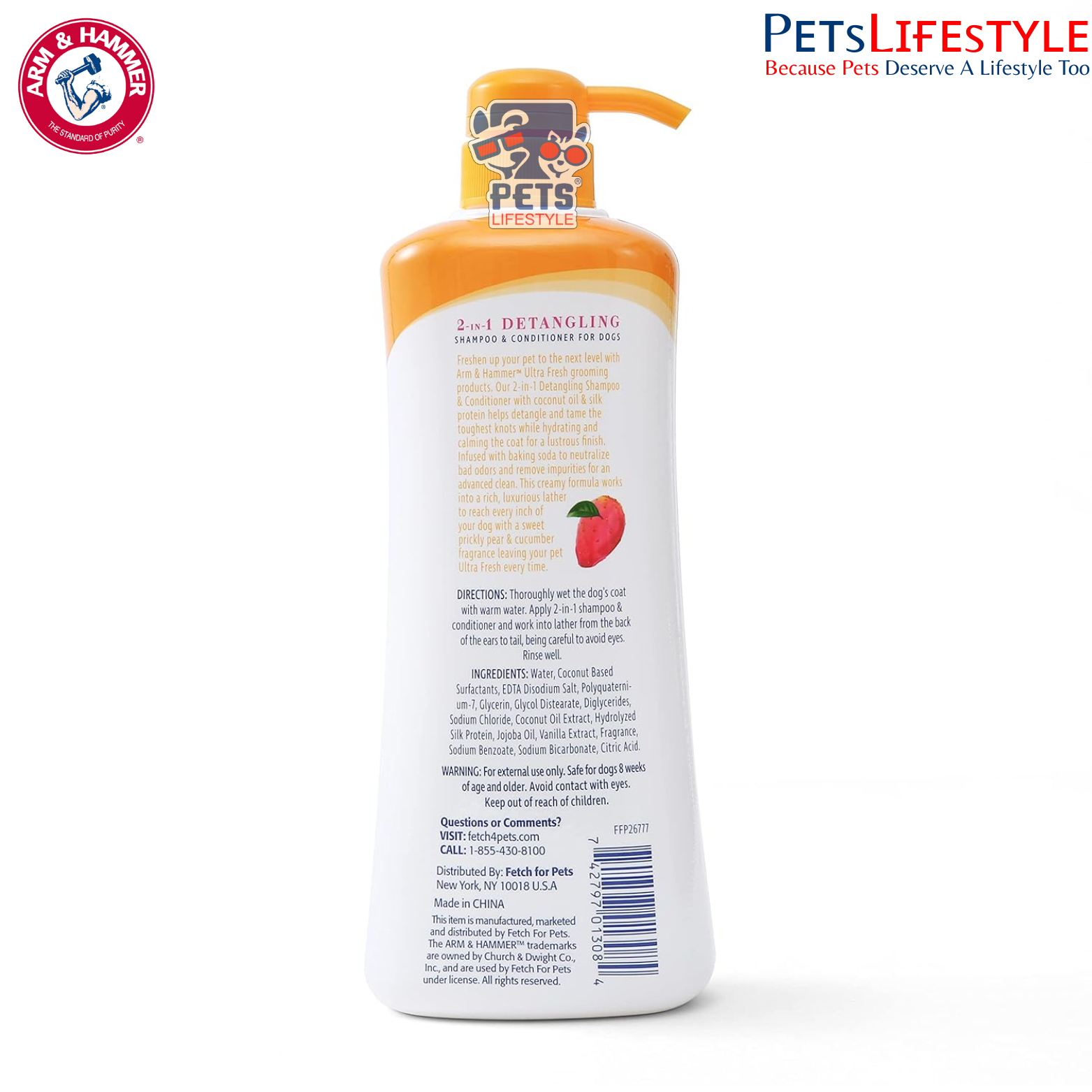 Arm & Hammer Ultra Fresh 2-in-1 Detangling Shampoo + Conditioner combines deep cleansing and conditioning in one easy step. Powered by baking soda for odor neutralization and enriched with cucumber and pear extracts, this value-size grooming essential helps cleanse, moisturize dry skin, soften fur, and detangle knots—leaving your dog’s coat fresh, smooth, and shiny after every wash.
