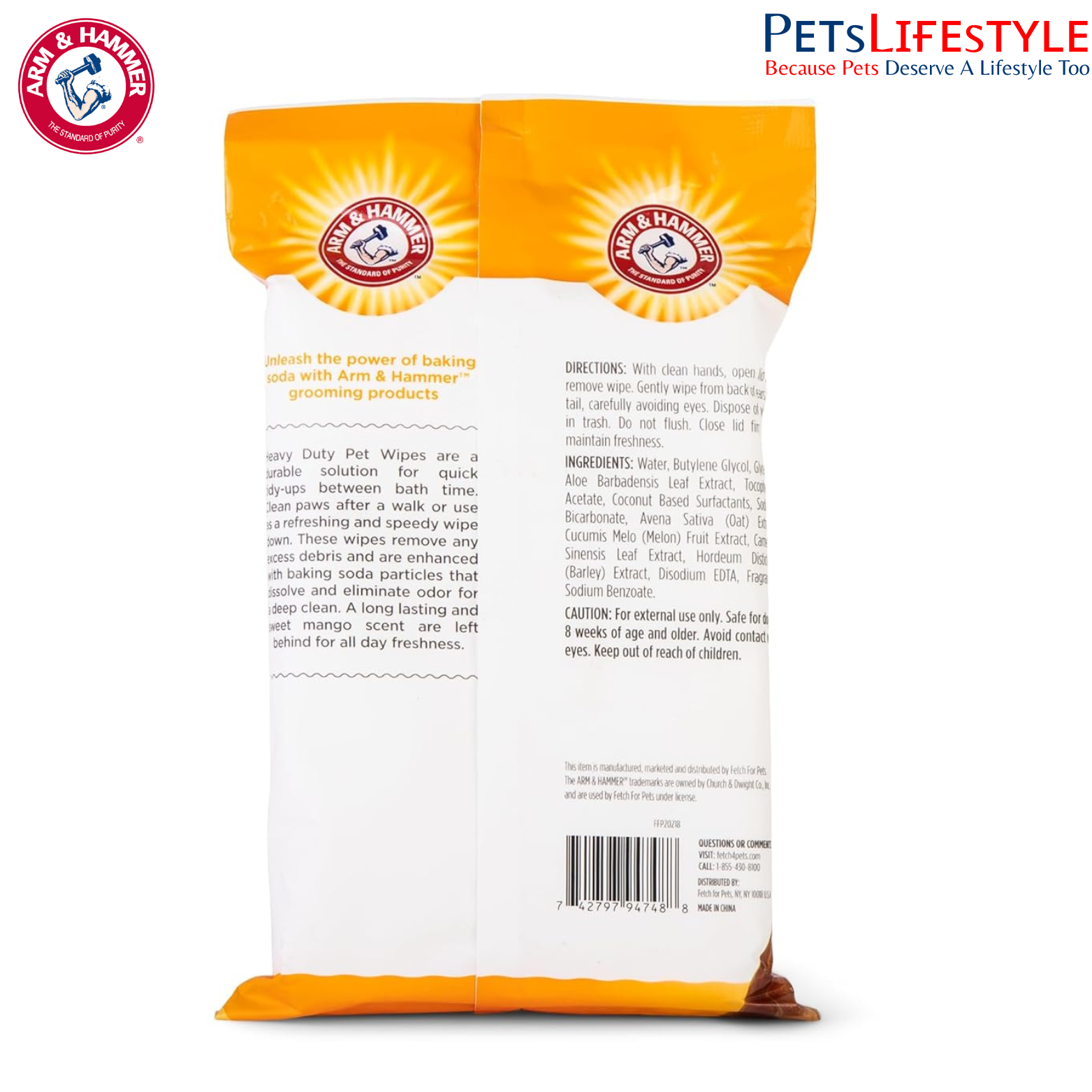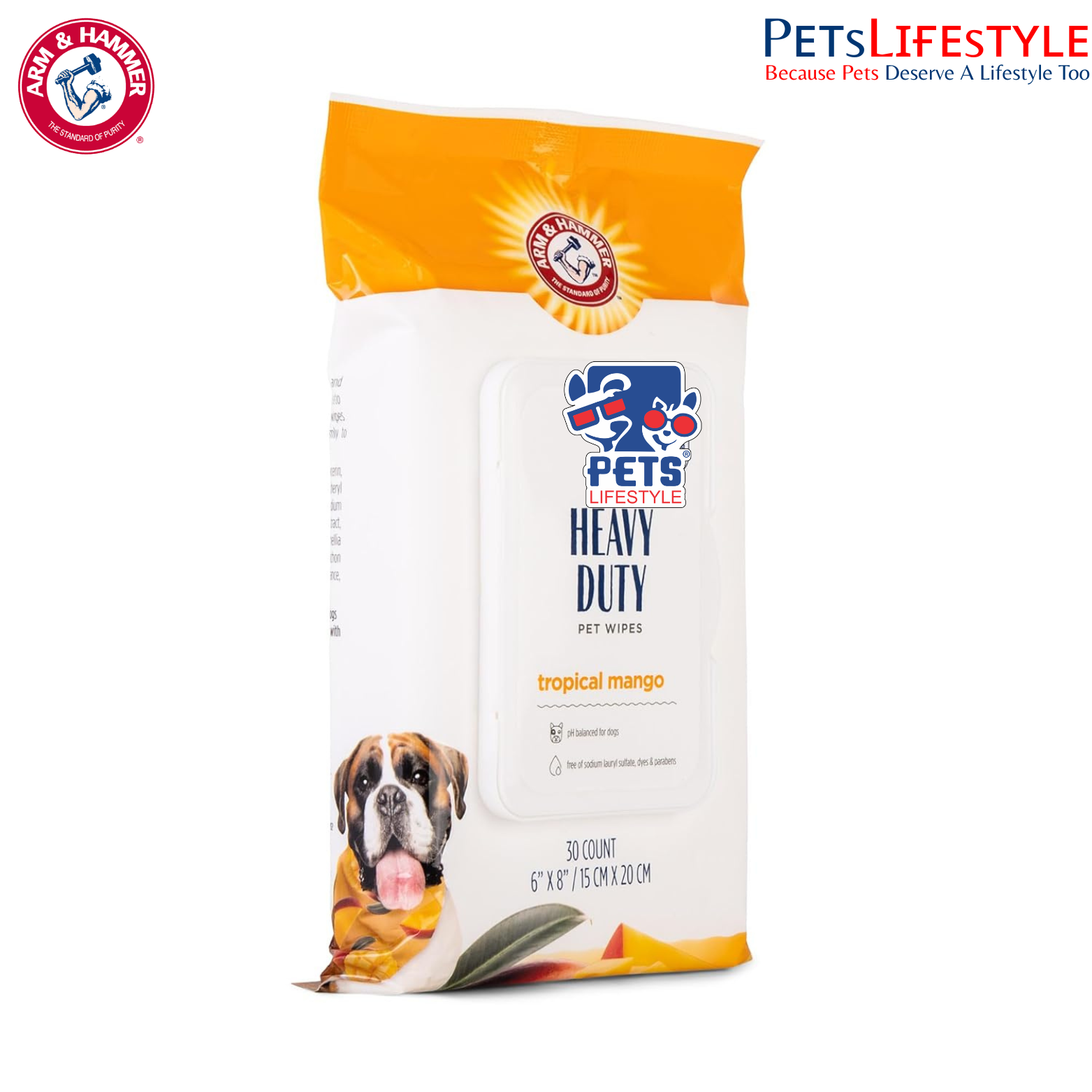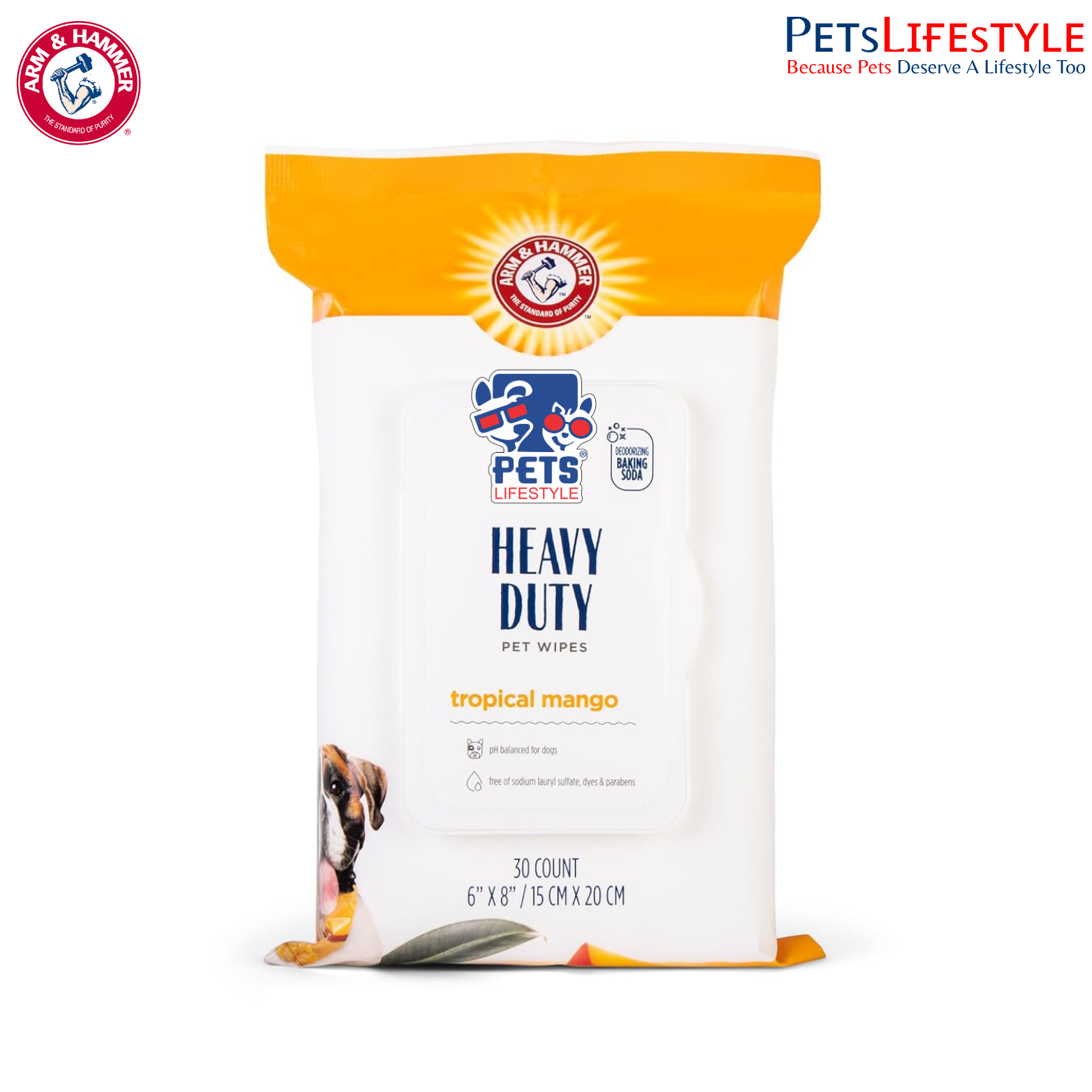 Arm & Hammer Heavy-Duty Multipurpose Bath Wipes are premium pet grooming wipes designed to quickly remove dirt, debris, and odours between baths. Infused with the trusted power of baking soda, these wipes effectively neutralise unpleasant smells while refreshing your dog’s coat with a long-lasting sweet mango fragrance.
