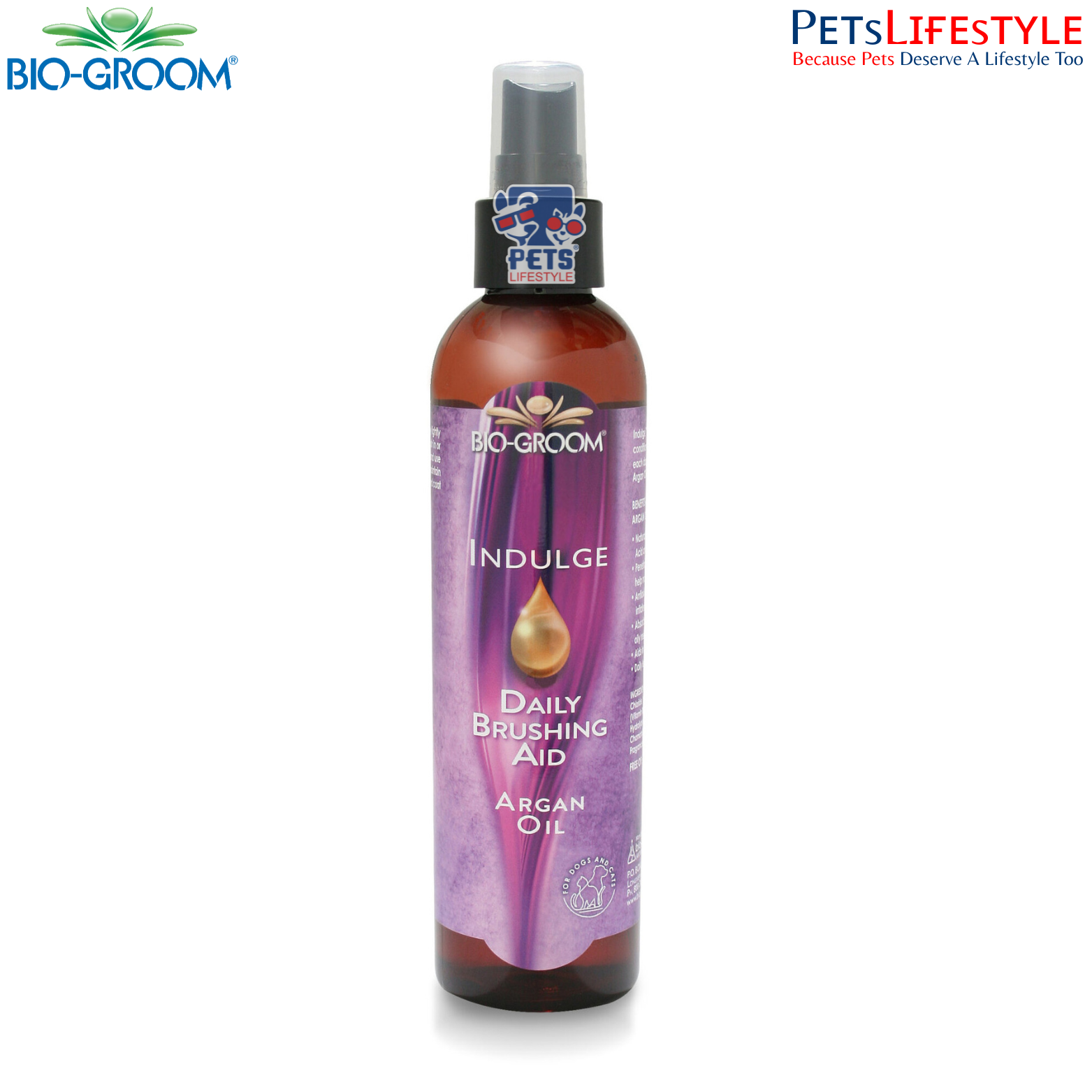 Give your pet luxurious daily coat care with Bio-Groom Indulge™ Pet Spray, a premium leave-in conditioner enriched with 100% pure Organic Moroccan Argan Oil. Known as “liquid gold,” argan oil is naturally rich in Vitamin E, linoleic acid, and omega-6 fatty acids, making it highly effective in repairing irritated, cracked, damaged, or dry skin.