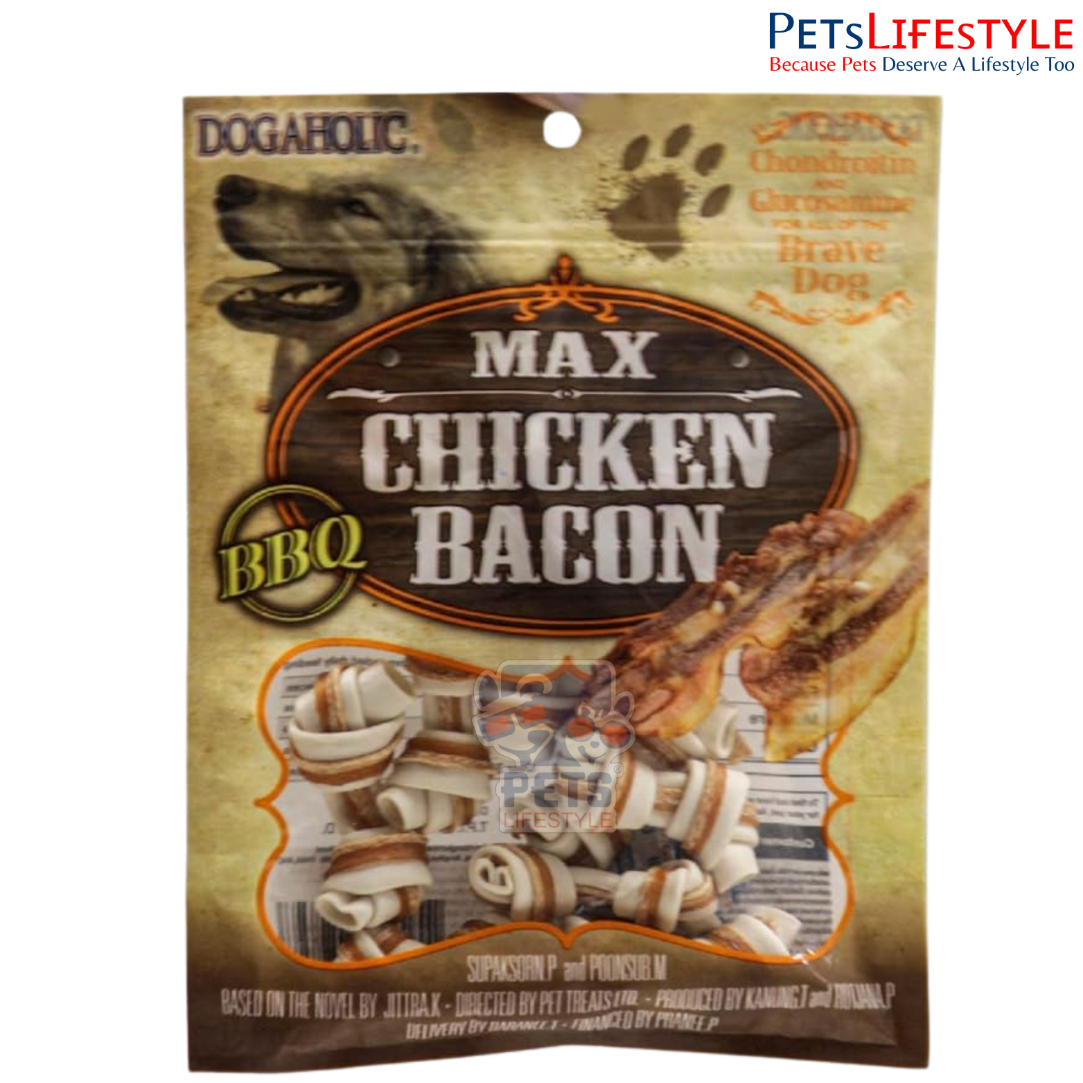 Dogaholic BBQ Max Chicken Bacon Bone Dog Treats deliver a smoky, savory bacon-barbecue flavor that dogs instantly love. Made with real chicken and bacon, these slow-cooked BBQ-style bone treats lock in tenderness and rich taste, making them perfect for rewarding dogs of all breeds and life stages.