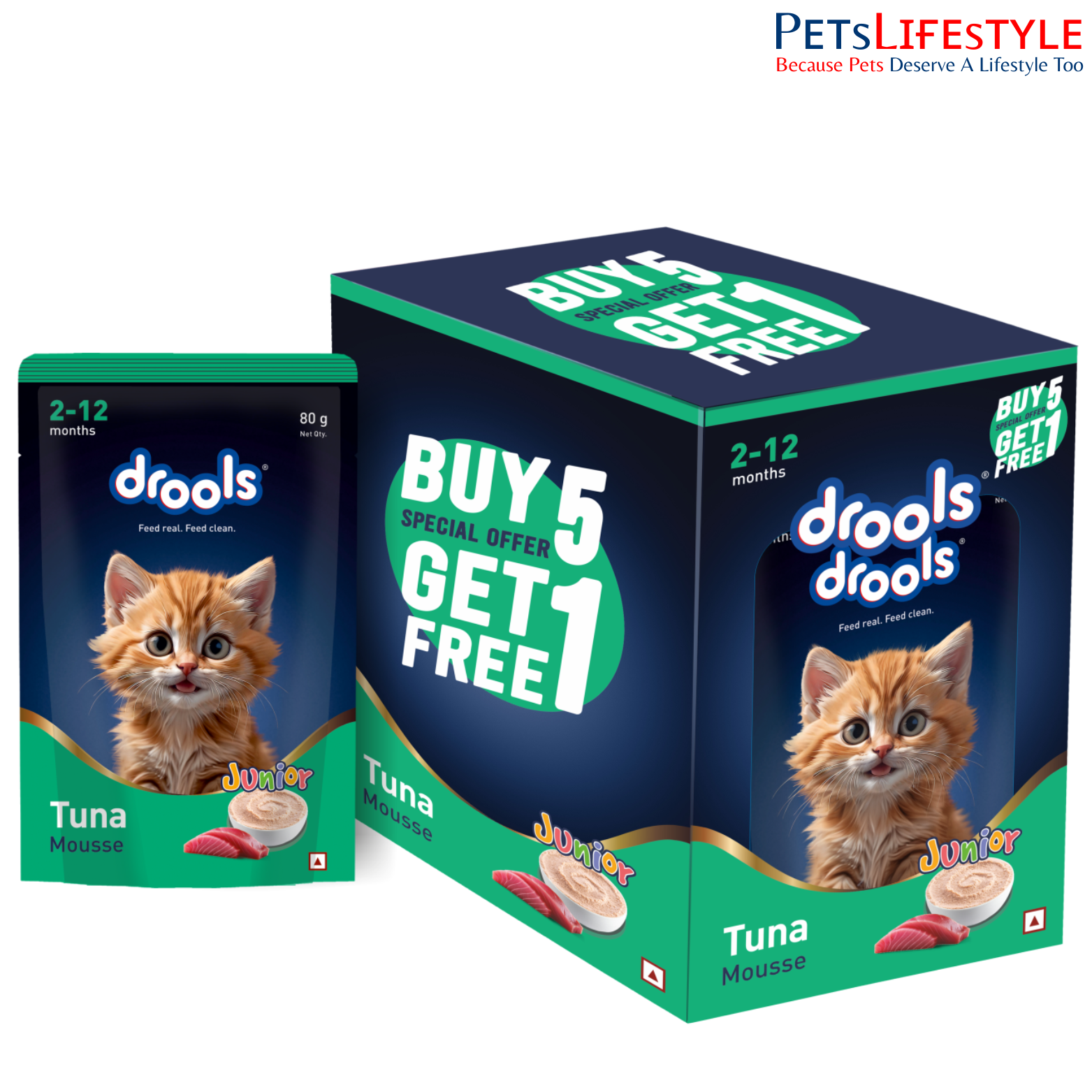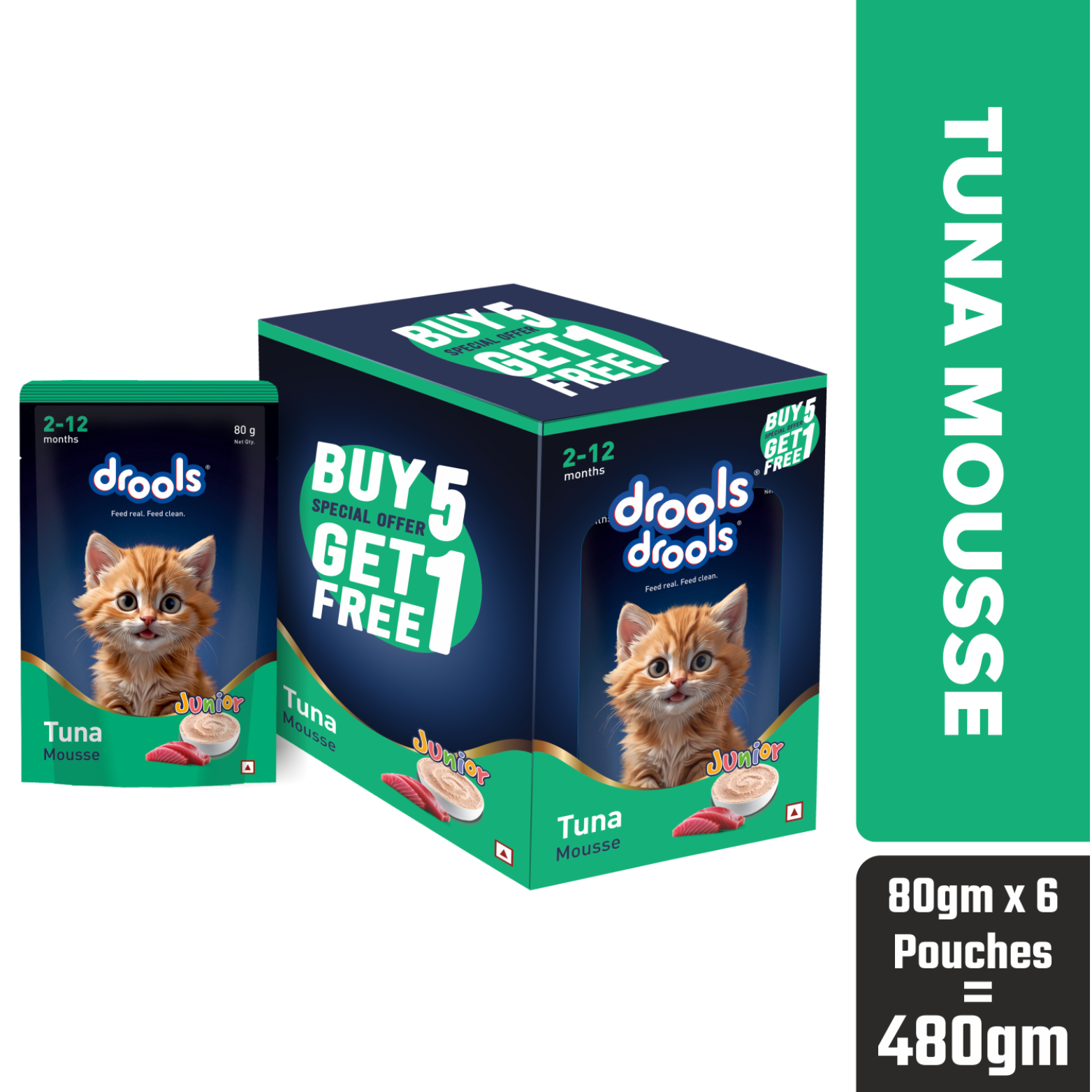 Drools Tuna Mousse Kitten 80g (5+1 Pack) is a soft, nutrient-rich wet food specially formulated to support the healthy growth and development of kittens. Made with real tuna, chicken, and hydrolysed chicken liver, this delicious mousse provides high-quality animal protein essential for building strong muscles and supporting overall vitality.