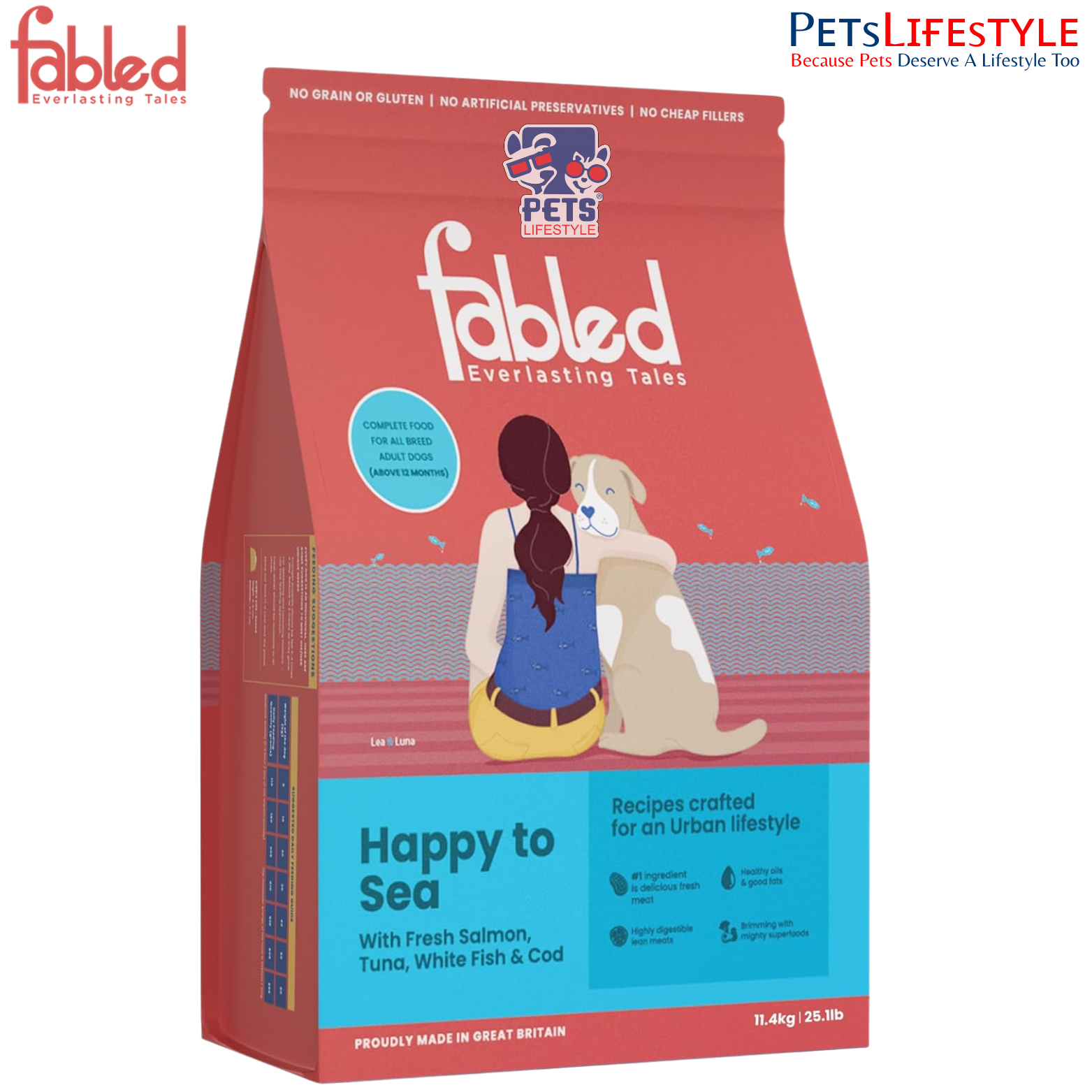 Fabled Eager to Meat Grain-Free Fish Recipe is a premium, high-meat dry food crafted for all-breed adult dogs above 12 months. Made with fresh salmon, tuna, white fish, and cod, this recipe delivers lean, easily digestible proteins along with rich Omega fatty acids for skin health, coat shine, and overall vitality.