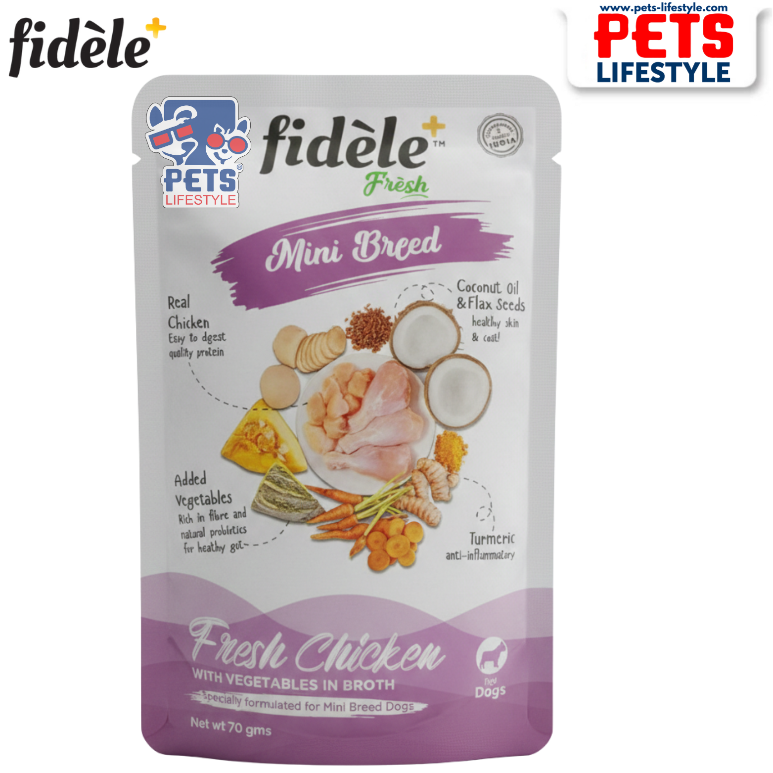 Give your mini breed dog premium daily nutrition with Fidele+ MINI BREED Fresh Chicken & Egg with Vegetables Wet Dog Food. Specially formulated for small and mini breed dogs, this wholesome recipe supports healthy skin, improved gut health, and joint strength.