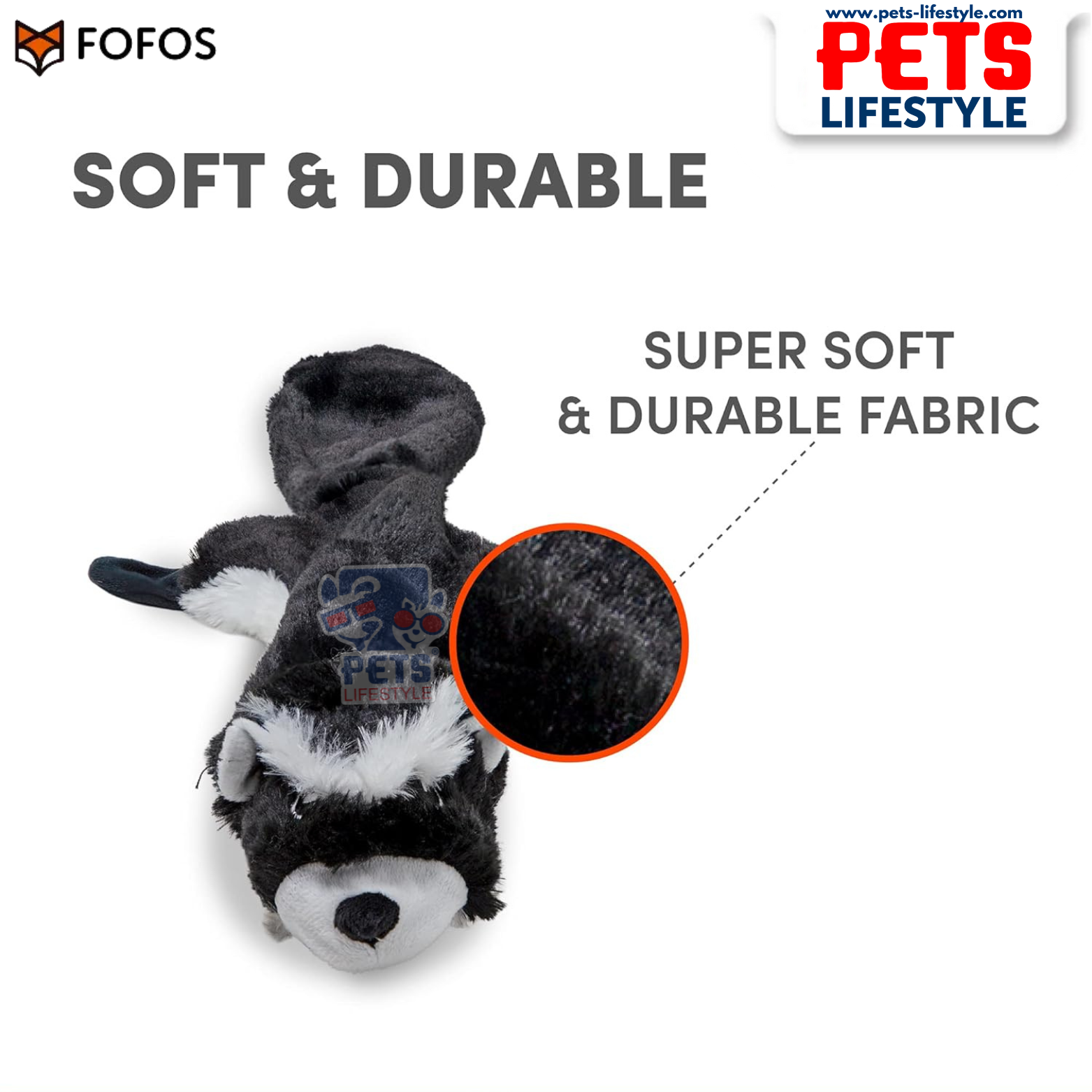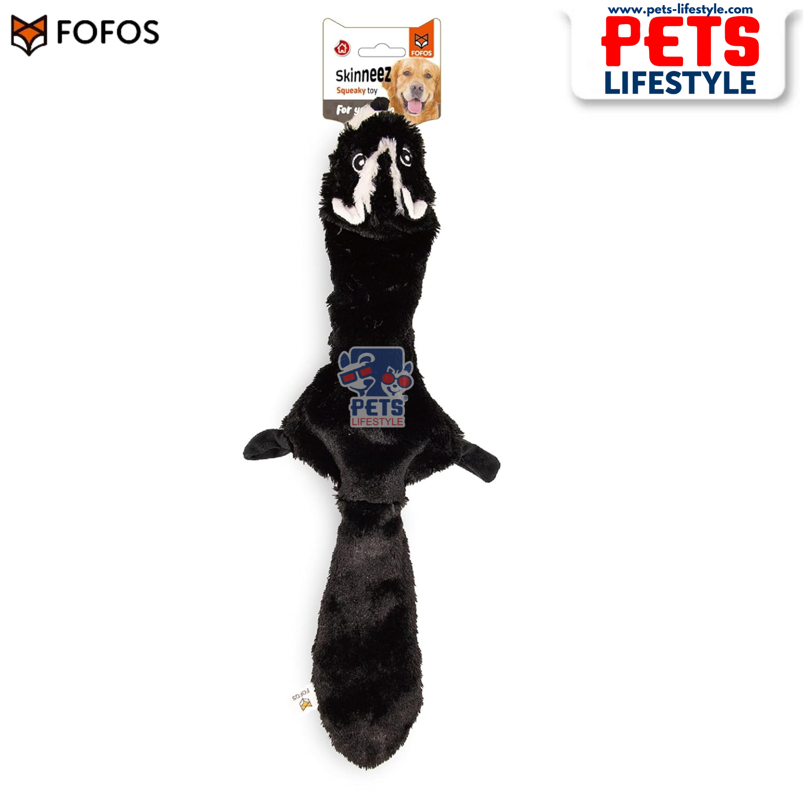 The FOFOS Skinneez Skunk is a stuffing-free plush dog toy crafted for dogs who enjoy tugging, shaking, chasing, and cuddling. Made with super soft yet durable fabric, this long, floppy skunk-shaped toy contains dual squeakers to mimic prey-like sounds that stimulate natural hunting instincts.