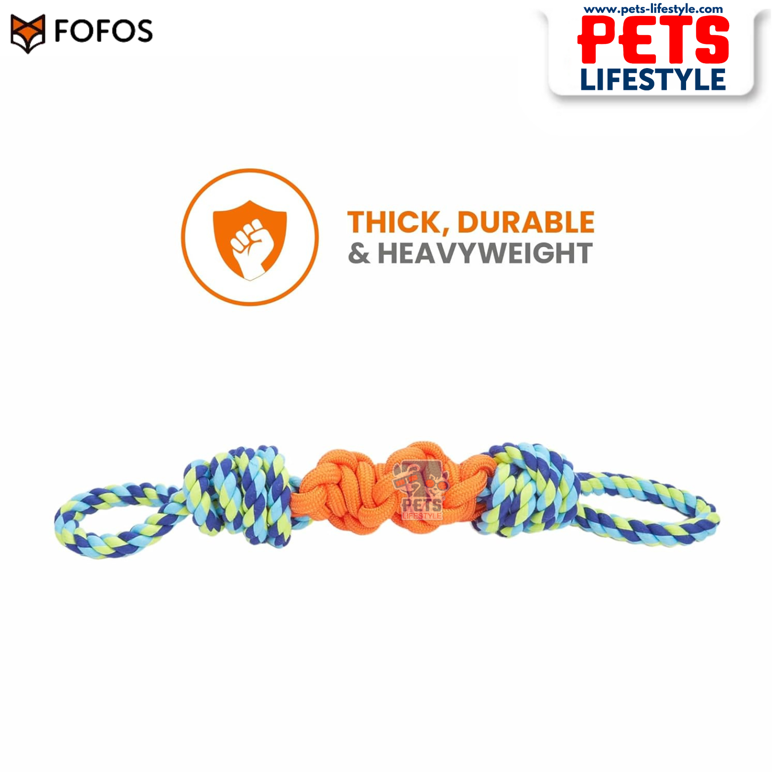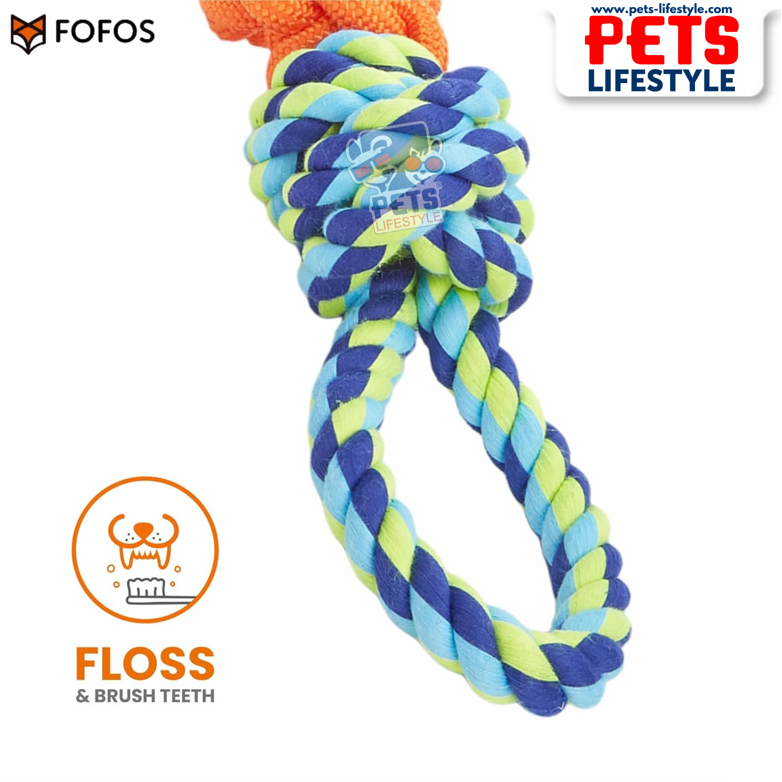 The FOFOS Flossy Rope Dog Toy Blue/Orange is a durable multi-strand rope toy built for powerful tugging, energetic play, and healthy chewing. Made using colourfast rope fibres visible to dogs, it enhances play engagement while remaining safe and non-toxic.