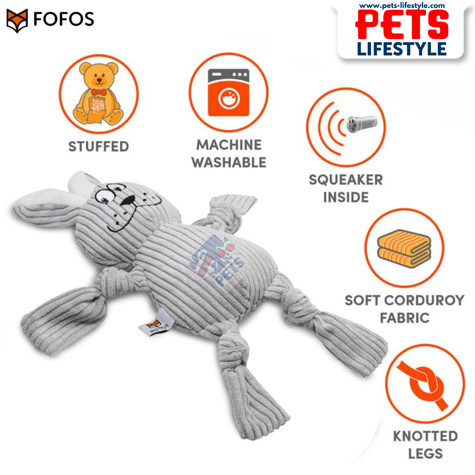 The FOFOS Fluffy Rabbit Grey is a soft, adorable plush toy designed to bring comfort, fun, and light play to your dog’s daily routine. Made from soft corduroy fabric with knotted legs, this toy is perfect for gentle tugging, fetching, and snuggling.