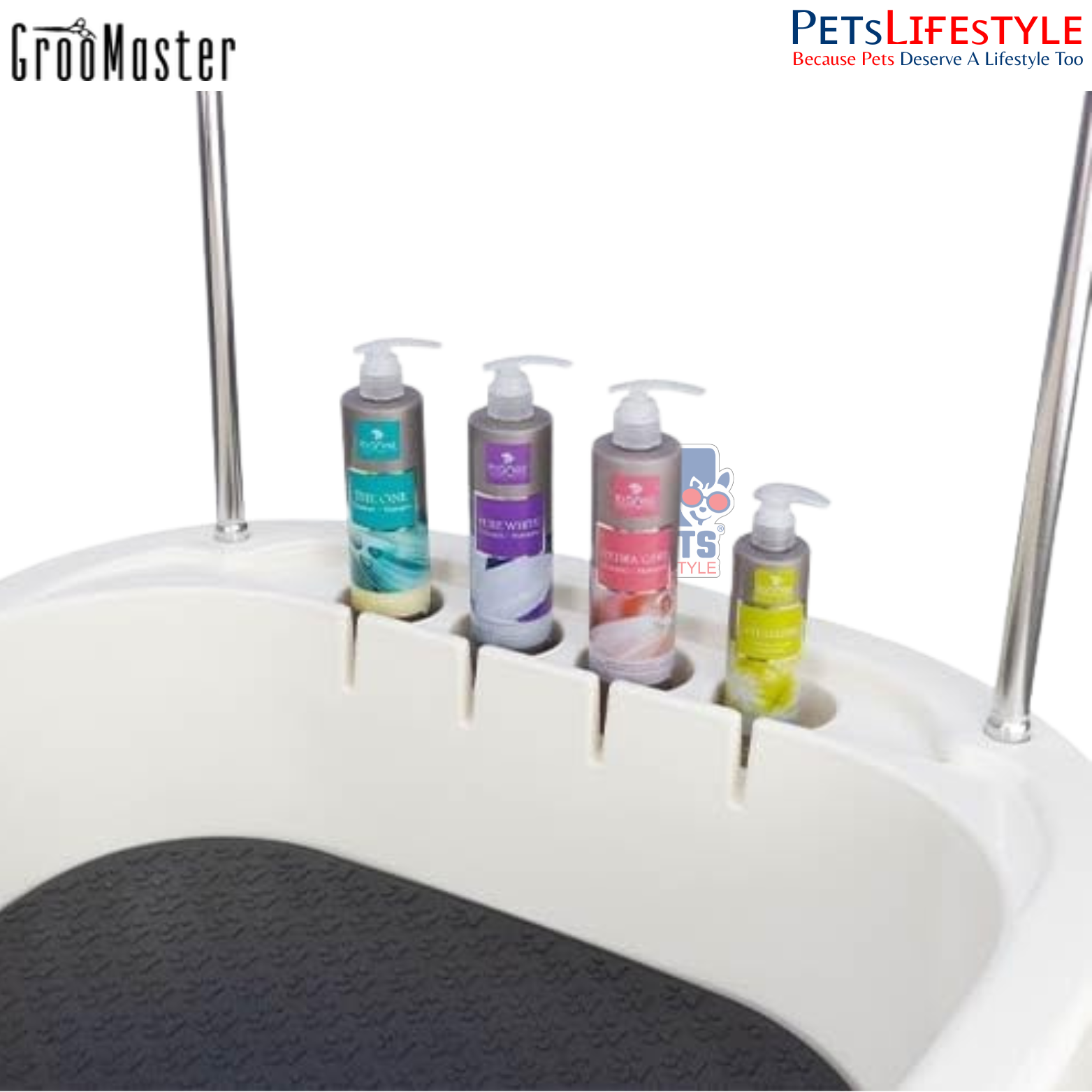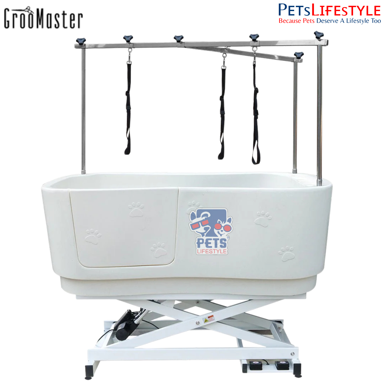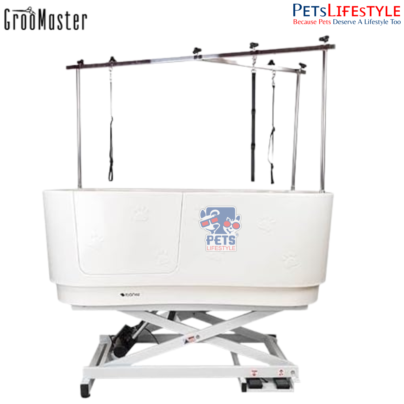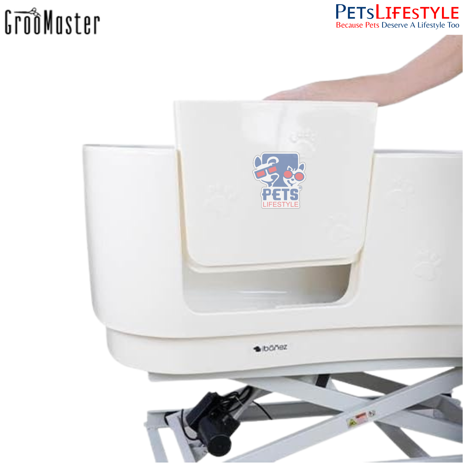 The Groo Master H-112 Electric Lift Plastic Tub is a premium grooming bath station designed to maximize comfort, convenience, and safety during pet bathing. Featuring a powerful electric lifting system, this tub allows easy height adjustment from 35" to 48.5", helping groomers maintain proper posture and reduce strain while working with pets of all sizes.