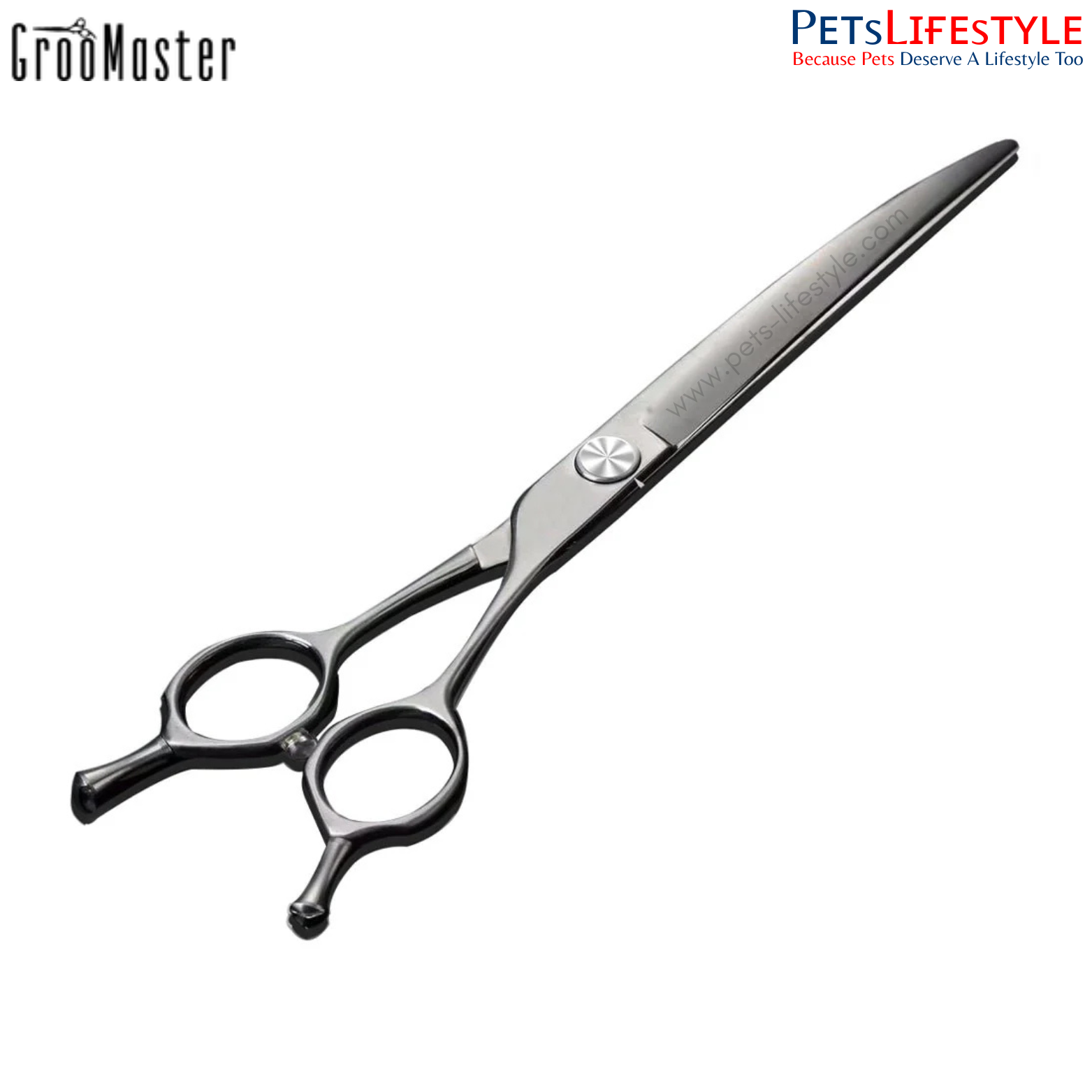 The Groo Master 8" Curved Shears are expertly crafted for sculpting, shaping, and precision finishing in professional grooming. Made from premium Japanese 440C stainless steel, these shears deliver outstanding sharpness, superior edge retention, and long-term durability, making them an essential tool for expert stylists.