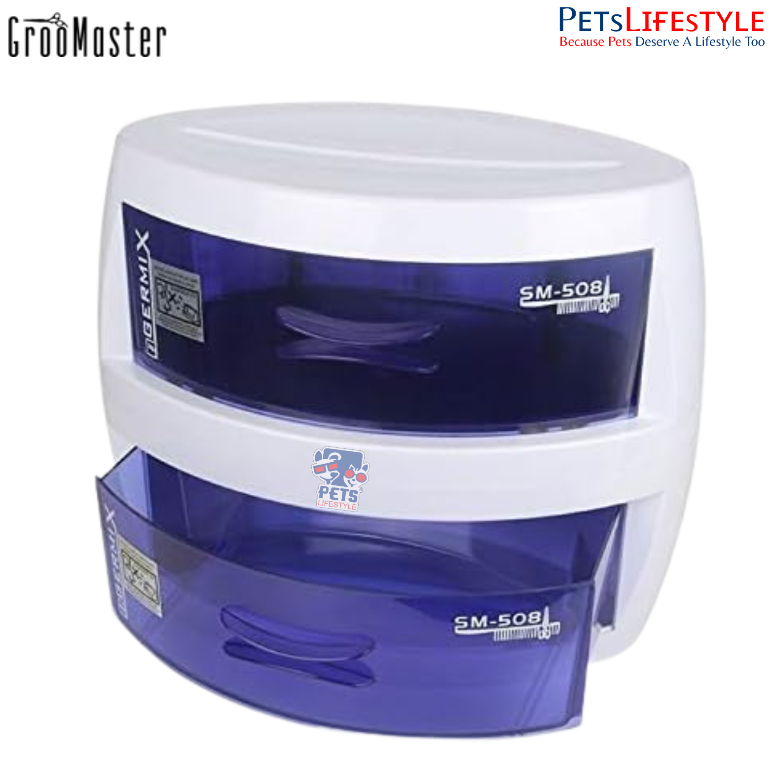 The GrooMaster Sterilizing Box – FromMaster Series is a professional UV sterilizer designed to maintain the highest hygiene standards in grooming salons, vet clinics, and pet spas. Equipped with a removable double-drawer system, it allows grooming tools to be sterilized in larger quantities with maximum convenience.