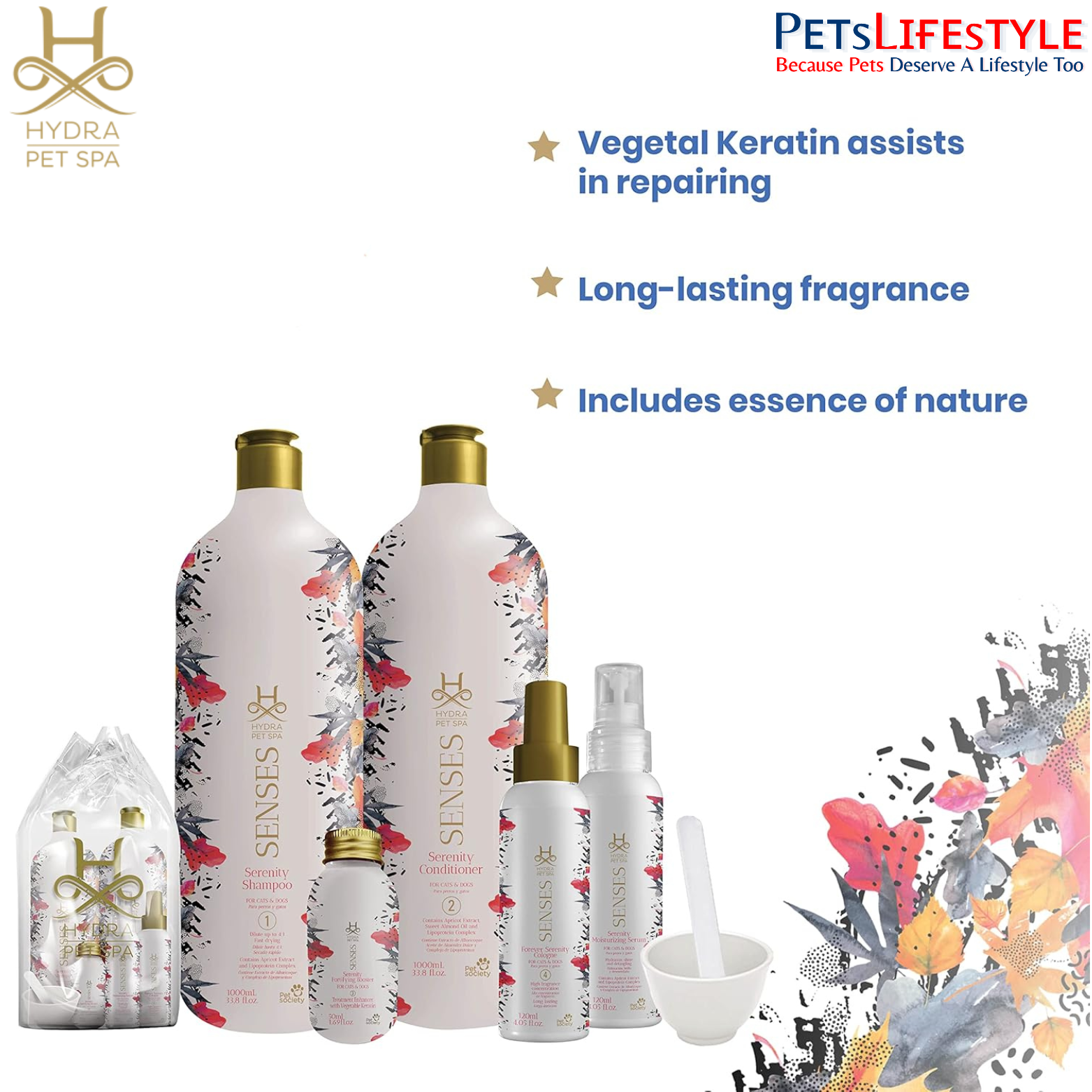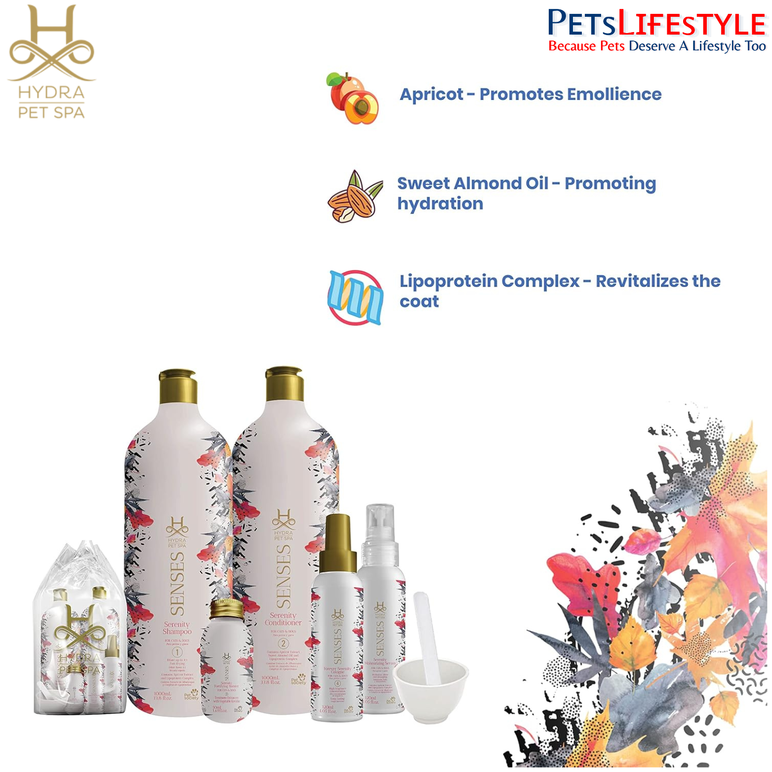 Hydra Spa Senses Serenity Pack of 7 is a complete luxury spa grooming system designed to deliver calming, nourishing, and rejuvenating care for dogs and cats. Created for professional grooming salons and premium at-home grooming, this all-in-one kit transforms routine baths into a sensory spa experience.