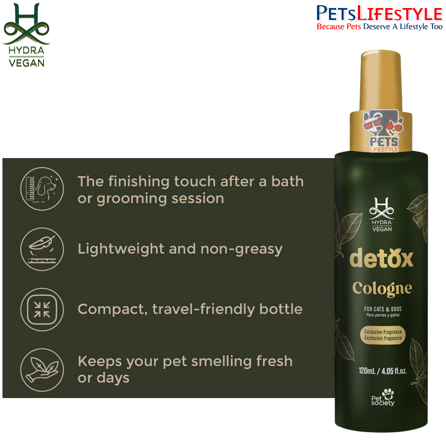 Hydra Vegan Detox Cologne is a premium, salon-grade vegan pet fragrance crafted for dogs and cats to deliver a fresh, clean, and long-lasting scent. Designed with a vegan-certified, skin-friendly formula, this cologne is dermatologically tested to ensure safe and gentle application on all coat types.