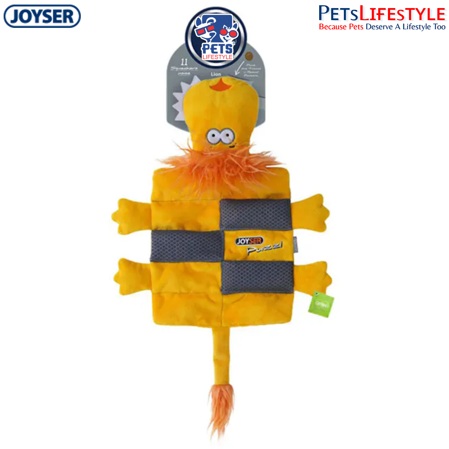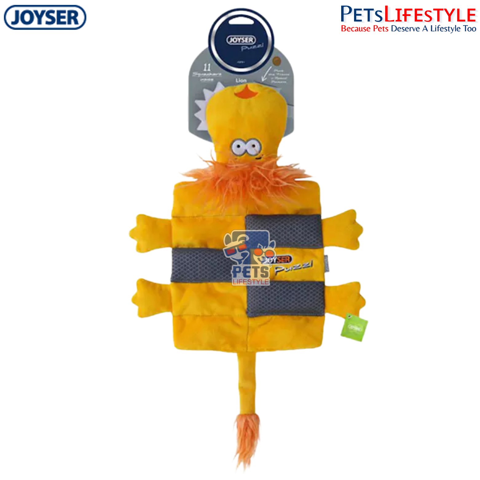 The JOYSER Puzzle Lion is an interactive plush dog toy designed for mental enrichment and energetic play. Featuring 12 squeakers, treat pockets, and JOYSER J-TECH reinforced dual-layer fabric, it keeps dogs engaged, stimulated, and comforted.