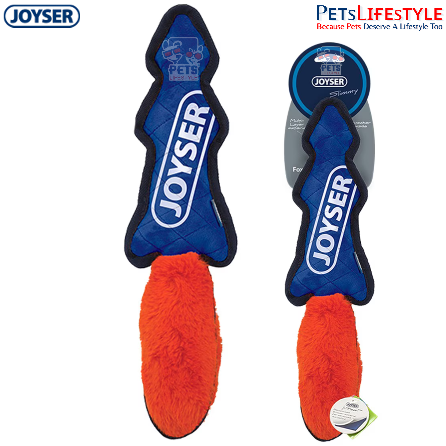 The JOYSER Slimmy Skin Fox is a long, soft yet durable plush dog toy designed for interactive play and comfort. Made with JOYSER J-TECH reinforced dual-layer fabric and puncture-resistant edges, it’s ideal for moderate chewers.