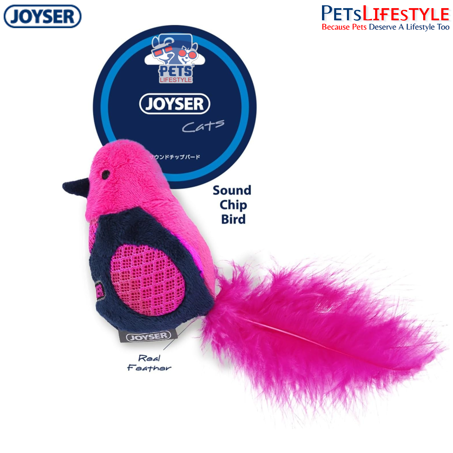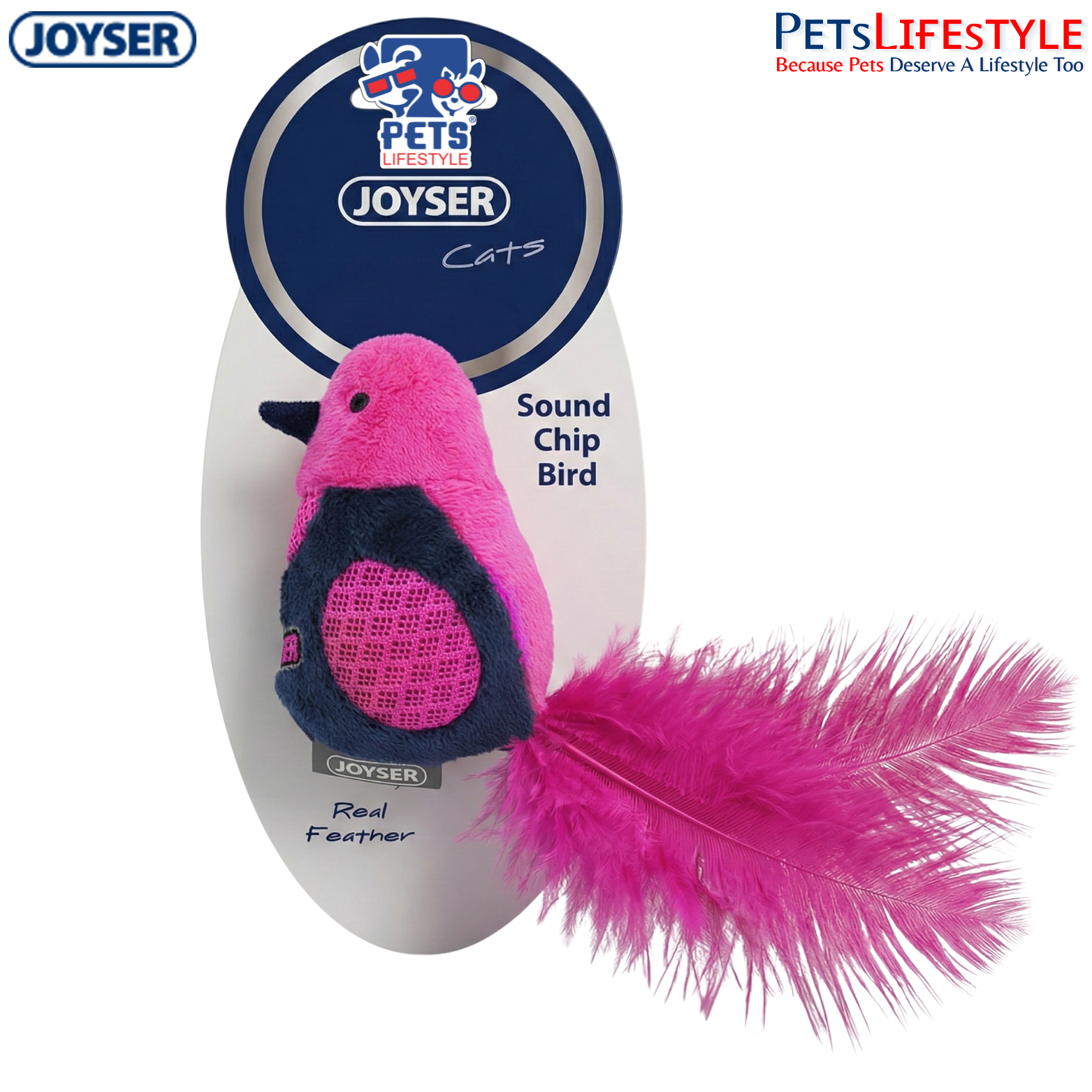 The JOYSER Cat Bird with Feathers & Sound Chip – Pink/Blue is a unique interactive toy that comes alive with sound at the slightest touch. Equipped with a motion-activated sound chip, it produces realistic prey-like sounds that instantly capture your cat’s attention and trigger natural hunting instincts.