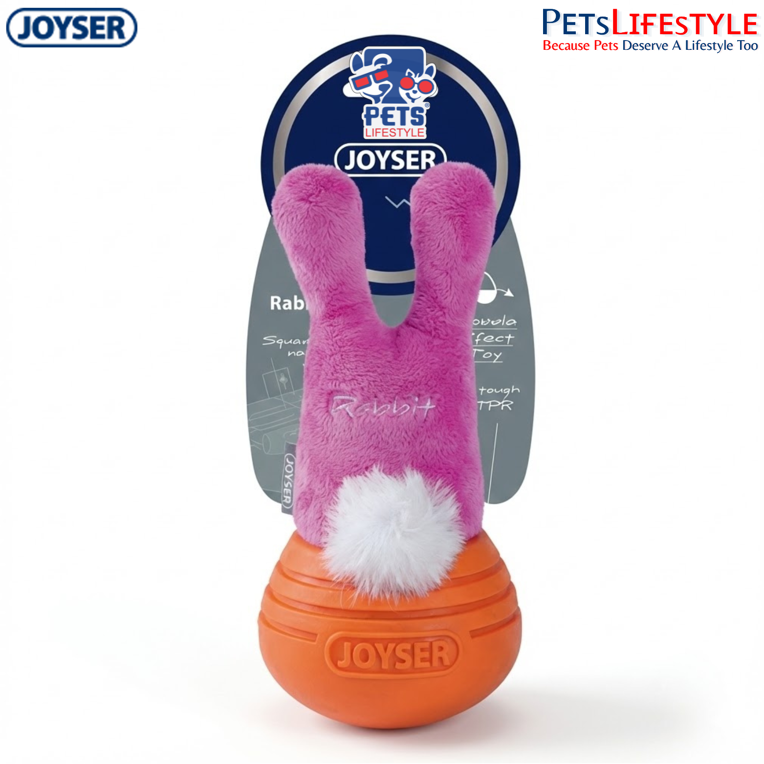 Crafted using JOYSER J-TECH™ reinforced dual-layer plush fabric and a durable TPR structure, this toy balances softness with strength. The soft plush rabbit exterior is gentle on teeth and gums, while the TPR core enhances durability and supports light chewing.