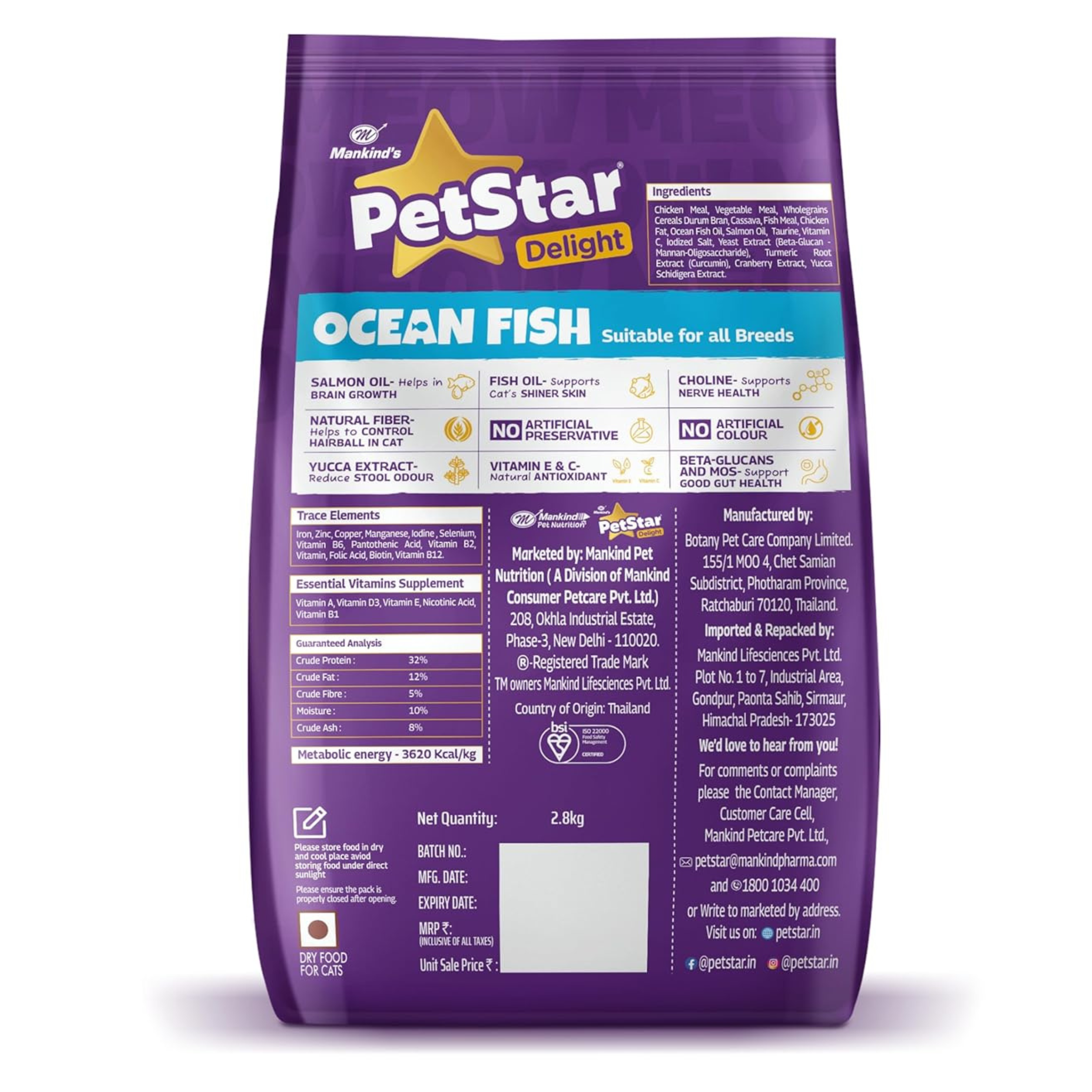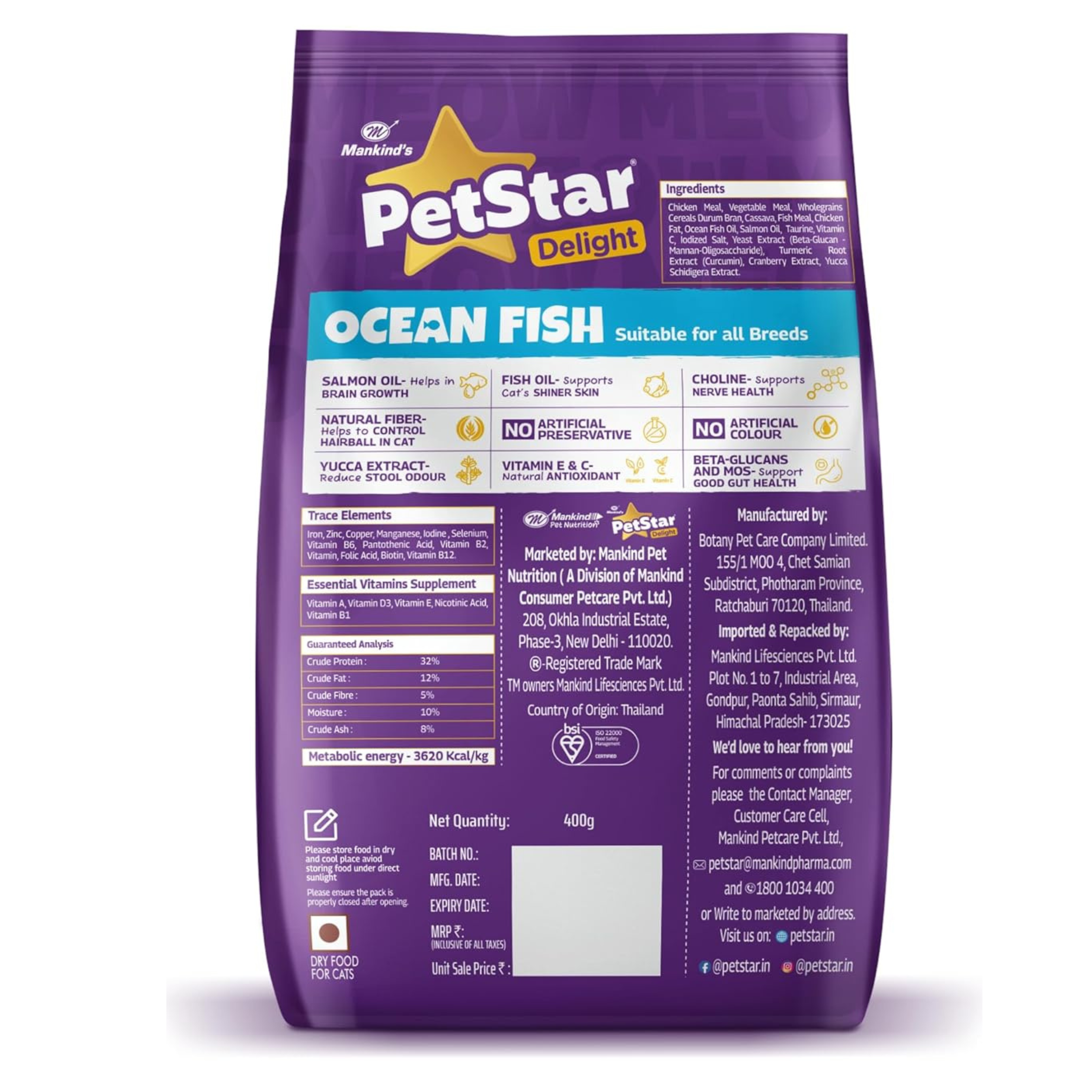 Mankind PetStar Adult Cat Food – Ocean Fish Flavour is a complete and balanced daily nutrition formula specially designed for adult cats aged 12 months and above. Crafted with high-quality ocean fish protein, this nutrient-rich formula helps maintain lean muscle mass while supporting sustained energy and overall vitality.