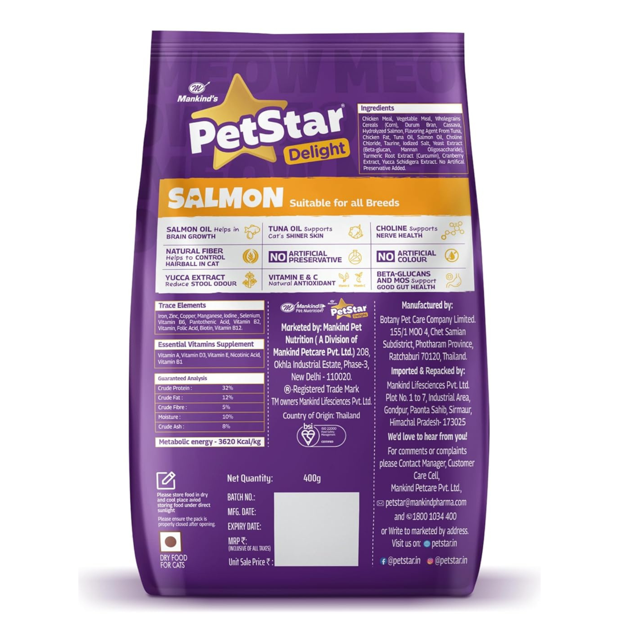 Buy Mankind PetStar Adult Cat Food Salmon Flavour Complete Nutrition with Taurine & Omega at Best Price Online in India