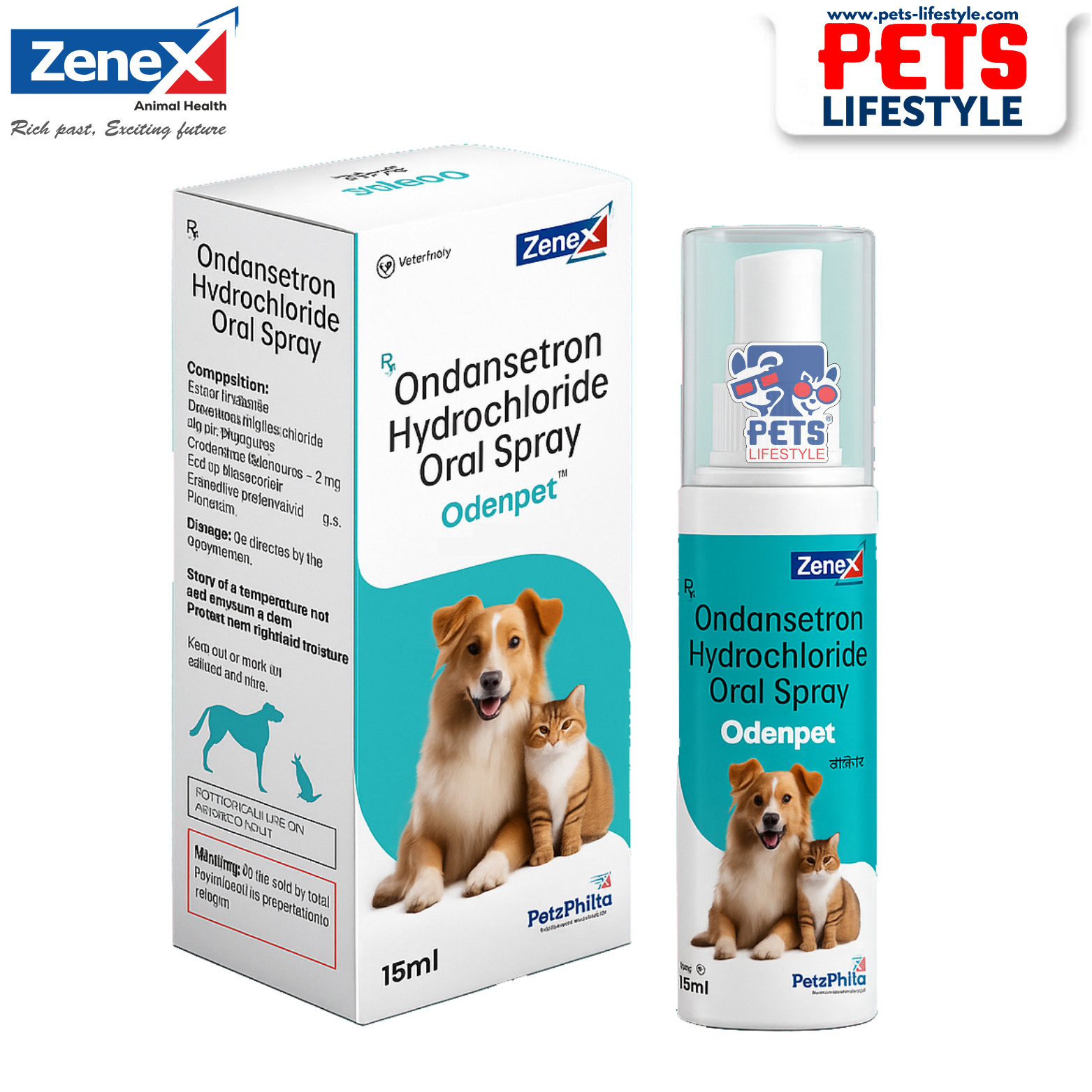 Its spray-based form allows efficient and direct absorption through the oral cavity, providing fast systemic relief in pets experiencing vomiting due to chemotherapy, radiotherapy, pancreatitis, or viral infections such as canine parvovirus. Odenpet works by inhibiting serotonin (5-HT3) receptors on vagal nerve terminals and within the chemoreceptor trigger zone (CTZ) of the brain, effectively controlling nausea without affecting gastrointestinal motility.