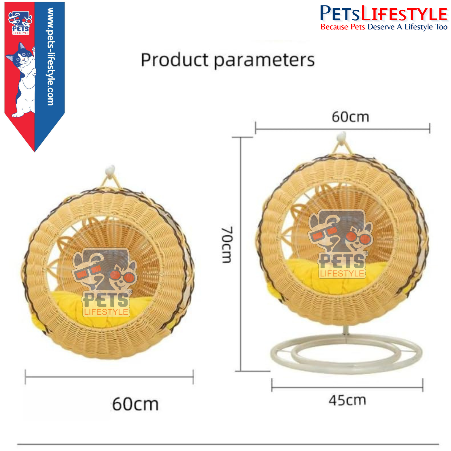 Crafted from 100% natural rattan, this cat hammock is odour-free, durable, waterproof, and pet-skin friendly. The sturdy base and tough bracket ensure stability, while gentle swinging offers a calming effect that helps reduce anxiety.