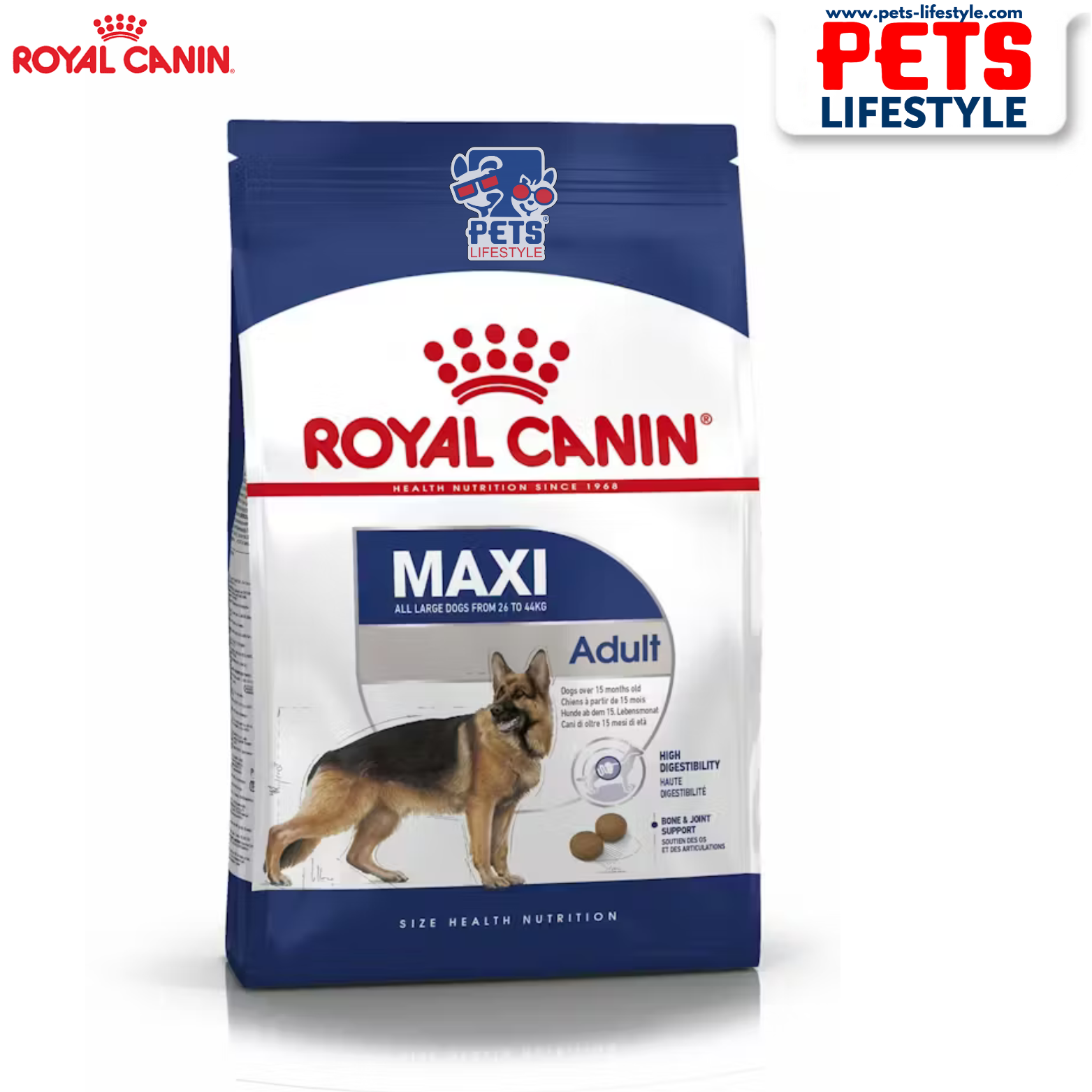The nutritional requirements of a larger breed dog versus a smaller breed dog vary greatly, therefore it is essential you feed a balanced diet according to size and other particular sensitivities. ROYAL CANIN® Maxi Adult food is specially formulated with your dog's nutritional needs in mind. This food is suitable for large dogs aged 15 months and over - with an adult weight ranging between 26-44kg. For large dogs, bones and joints can be a particular sensitivity, therefore maintaining your dog's joint health is crucial for the wear and tear it may face due to its size. ROYAL CANIN® Maxi Adult food will help maintain an ideal weight that your dog can comfortably support. ROYAL CANIN® Maxi dog food contains an exclusive formula to help maintain your dog's digestive health. What's more, it's enriched with omega-3 fatty acids (EPA and DHA), ROYAL CANIN® Maxi adult dog food also helps to support and maintain your dog's skin by keeping it healthy and nourished.