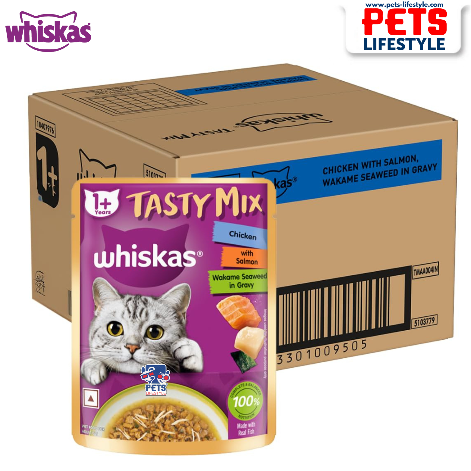 Whiskas Adult (1+ year) Tasty Mix Wet Cat Food Made With Real Fish, Chicken With Salmon Wakame Seaweed in Gravy - 70 gm packs Whiskas Share WhatsApp Deel Tweet Pin it Messenger Email Sale -10%
